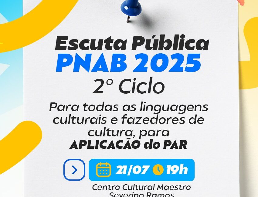 Na próxima segunda-feira, dia 21, a Prefeitura do Bonito realizará a segunda escuta da Política Nacional Aldir Blanc (PNAB) para todas as linguagens culturais e fazedores de cultura do município. O encontro será realizado no Centro Cultural Maestro Severino Ramos às 19 horas, com o objetivo de discutir a aplicação do PAR-PNAB (Plano de Aplicação de Recursos da Política Nacional Aldir Blanc).